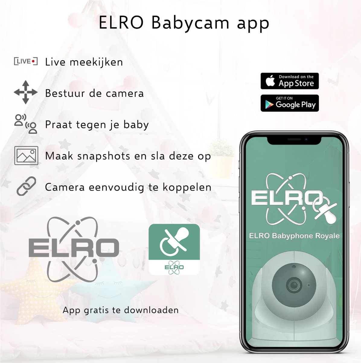 Via de gratis ELRO Baby Monitor app verbonden met je wifi-netwerk, eenvoudig te downloaden op Android en iOS, kijk je bovendien op afstand mee – ideaal voor ouders die graag weten dat alles goed gaat wanneer ze even niet in de buurt zijn. De app biedt volledige controle over beelden, geluid en slaapliedjes, en zorgt dat je altijd verbonden blijft.
