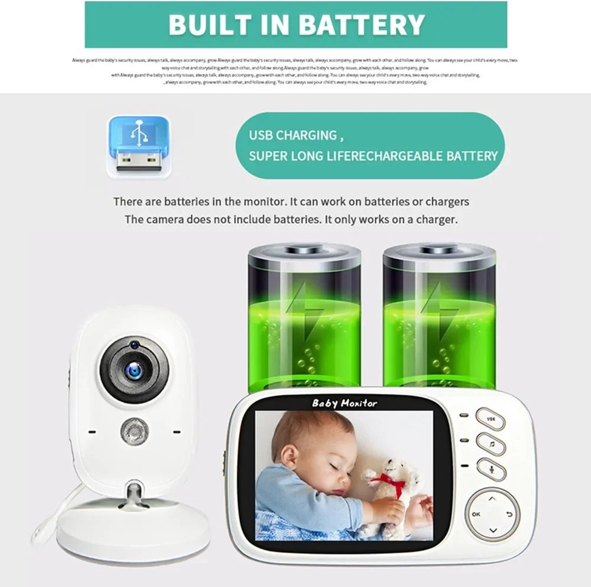De overzichtelijke 3.2 inch kleurenscherm geeft u een duidelijke kijk op uw baby, terwijl het automatische nachtzicht en geluidsactivatie zorgen voor continue bewaking zonder gedoe. De babyfoon is gemaakt van duurzaam ABS kunststof, strak wit van kleur, en heeft compacte afmetingen (120 x 70 x 17 mm) voor makkelijk gebruik en transport.