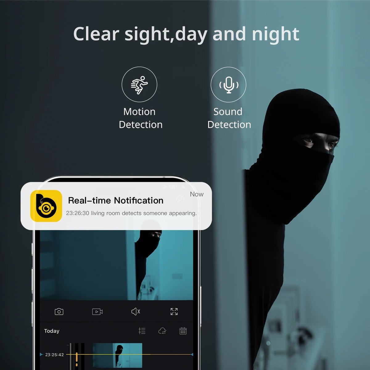 - Beveilig en verzorg je huis: Het apparaat is perfect voor binnengebruik, bijvoorbeeld in de woonkamer, hal, of bij de etensbak van je hond. Met detectie van beweging en geluidsactivatie weet je onmiddellijk wanneer er iets speelt.